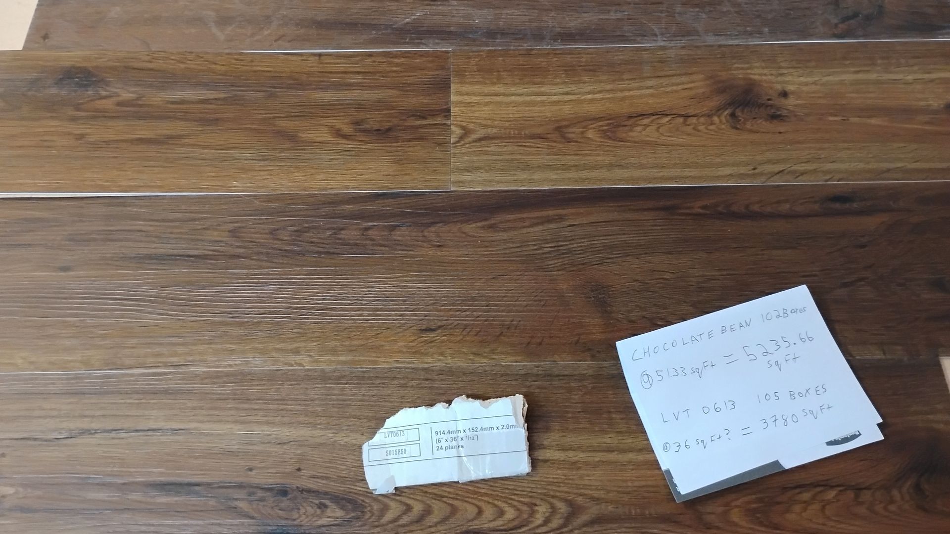 36 square feet per box, 105 boxes available